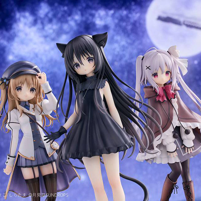 Esculpido e pintado com delicado cuidado, este conjunto recria fielmente o mundo das ilustrações de Shiratama: Noir permanece em silêncio tranquilo como um gato preto ao luar, Karuha irrompe com energia e maravilha, e Neri brilha suavemente sob o vento do pôr do sol. Cada figura captura um tom emocional distinto e, juntas, contam uma história poética por meio de sua presença.